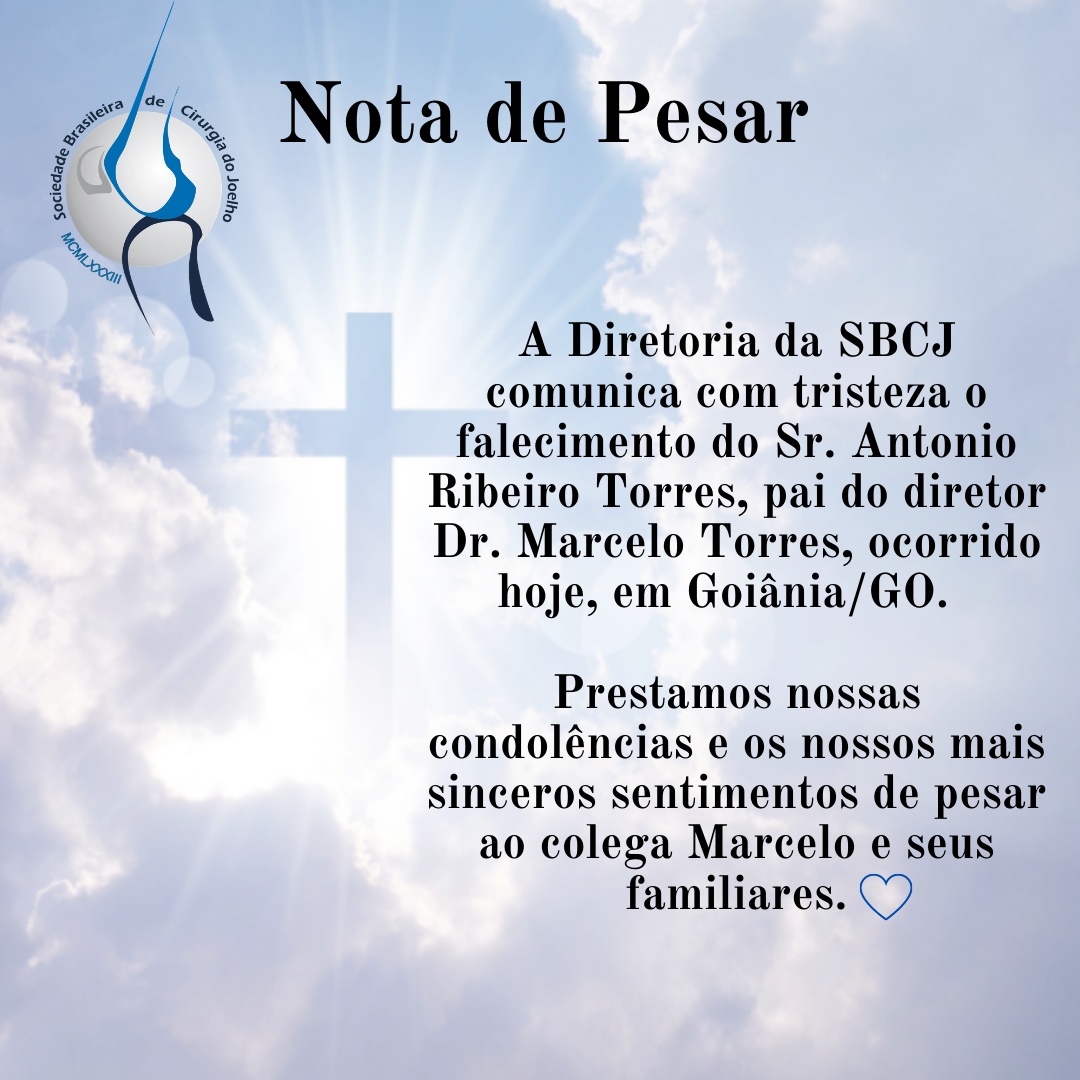 A Diretoria da SBCJ comunica com tristeza o falecimento do Sr. Antonio Ribeiro Torres, pai do diretor Dr. Marcelo Torres, ocorrido no dia 24/07, em ...
