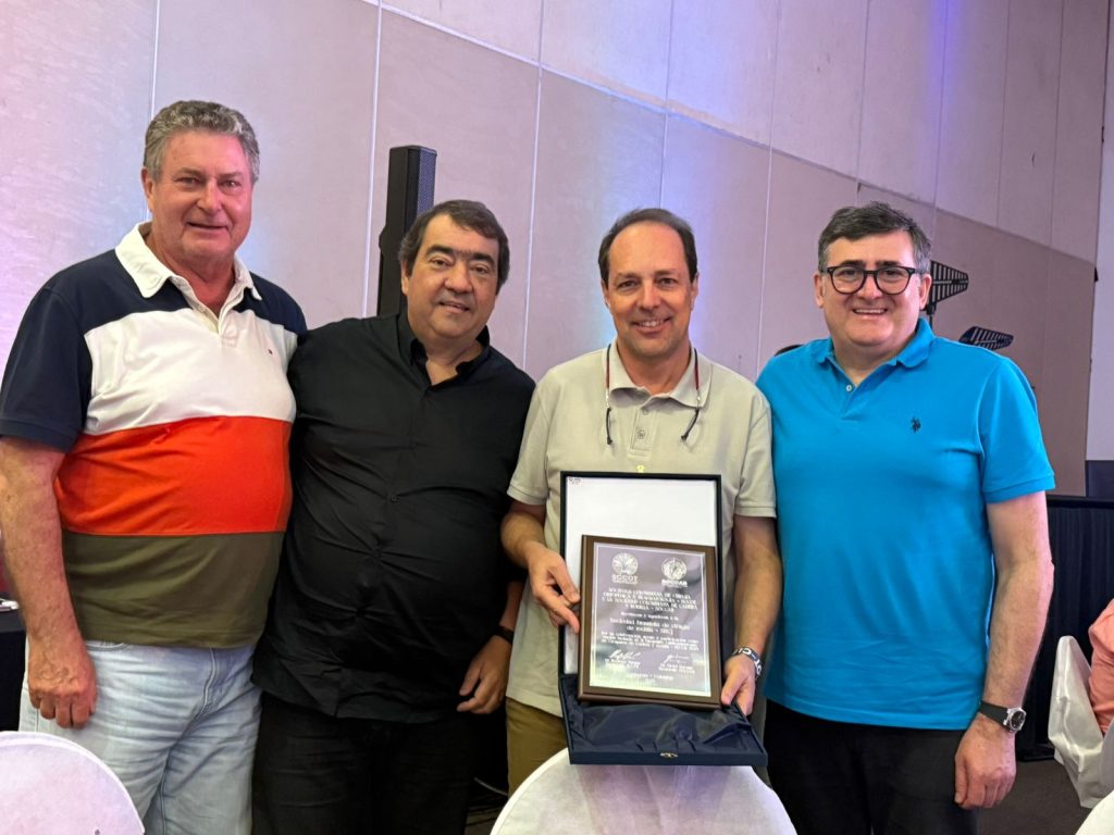 O Presidente da SBCJ, Dr. Guilherme Zuppi, recebeu a placa em nome da Sociedade e agradeceu pelo reconhecimento, destacando a importância da parceria para fortalecer o intercâmbio científico entre o Brasil, a Colômbia e toda a América Latina na cirurgia do joelho.